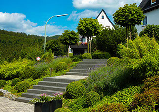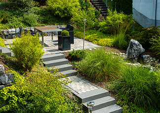 Fachgerechte Erbauung und Bepflanzung von Gartenterrassen.